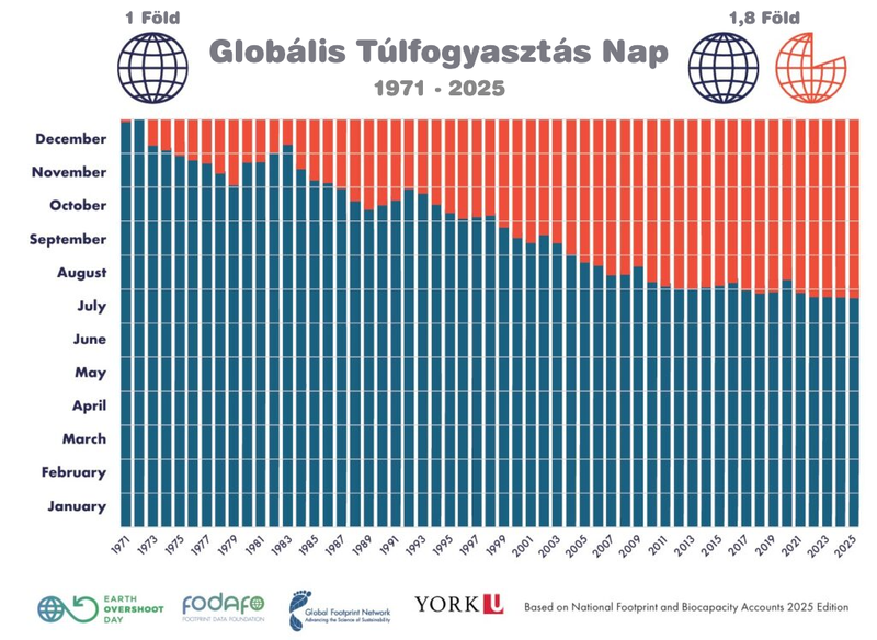 Ha például mindenki úgy élne, mint egy átlagos amerikai állampolgár, a Túlfogyasztás Napja márciusban lenne. De mi sem vagyunk túl ártatlanok. Magyarország esetében idén június 2-án következett be ez a nap. Igaz, minimális örömre adhat okot, hogy a 2024-es évhez képest, nem május 25-én, hanem 8 nappal később értük ezt el.