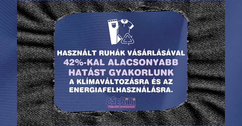 Ezzel párhuzamosan már tudományos kutatások bizonyítják, hogy a használt ruhák vásárlása 42%-kal alacsonyabb klímaváltozási hatást és energiafelhasználást eredményez. Nagyjából 3 kg CO2 takarítható meg minden újrafelhasznált minőségi ruhadarabbal. Így aki csak second hand ruhákat vásárol, évente akár 100-200 kg szén-dioxid-kibocsátást előzhet meg.