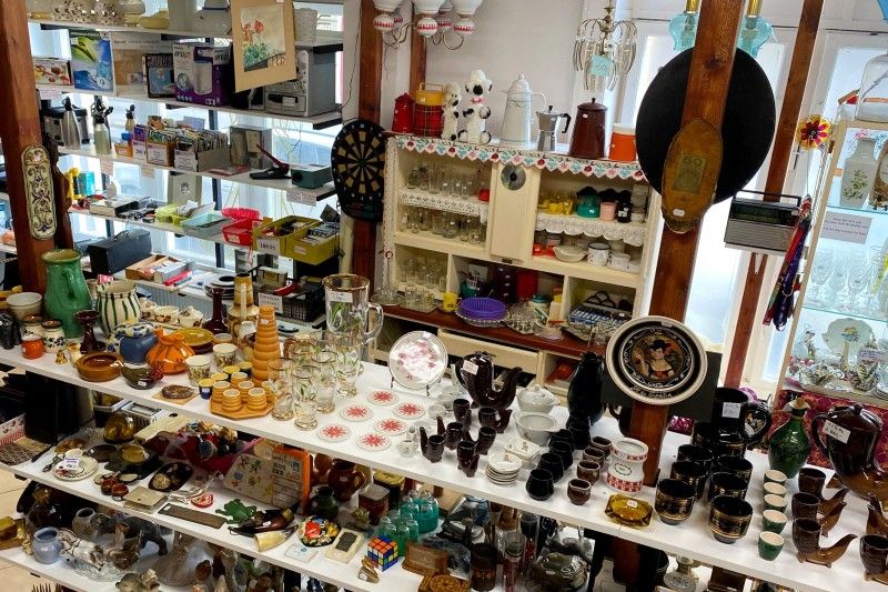 Ékszerek, bizsuk, antik és retro tárgyak, festmények, dísztárgyak, konyhai eszközök, valamint könyvek, játékok és még műszaki cikkek is fellelhetőek a földszinti eladótérben.